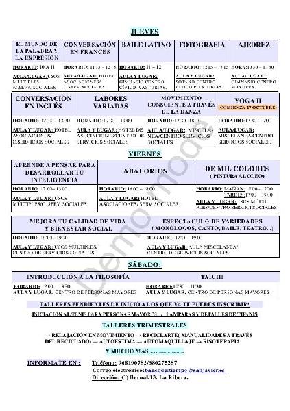 CATALOGO DE ACTIVIDADES Y TALLERES EN LOS CENTROS DE PERSONAS MAYORES